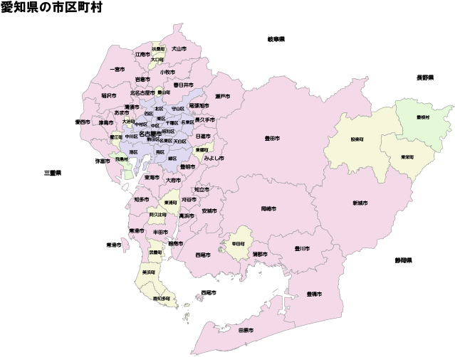 名古屋市全域、日進市全域、長久手市全域、尾張旭市全域、豊明市全域、大府市北部地域、北名古屋市全域、豊山町全域、春日井市南部地域、あま市東部地域、大治町全域、蟹江町東部地域